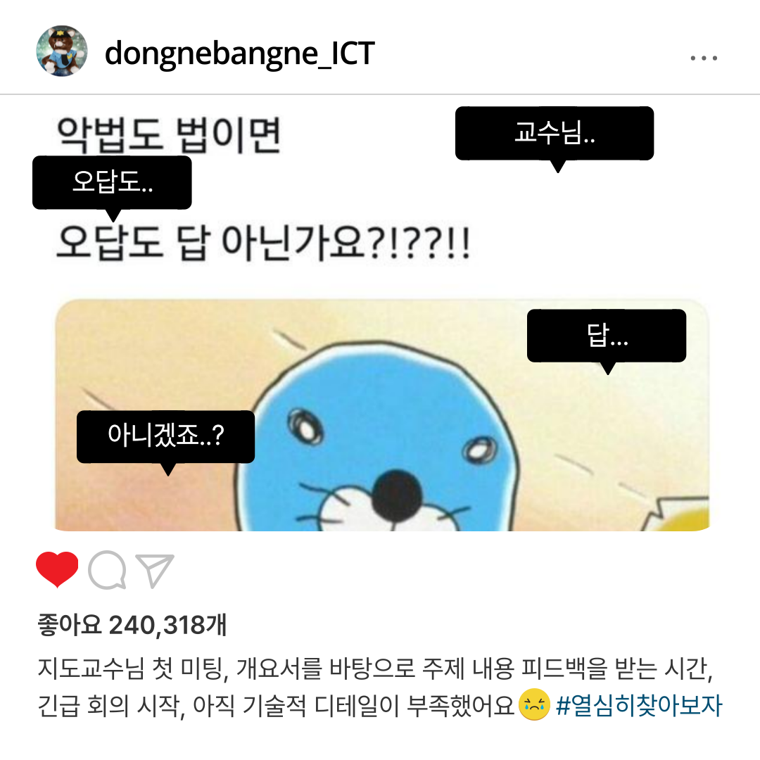 회의 안건 1 : 지도 교수님 피드백 후 긴급 회의