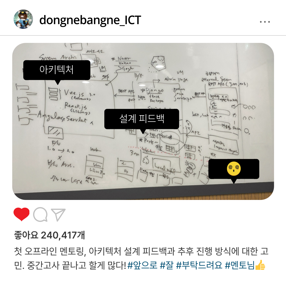- 백은 Django 사용, 멘토님의 도움도 받을 수 있고 팀원 두명 사용 경험 있음